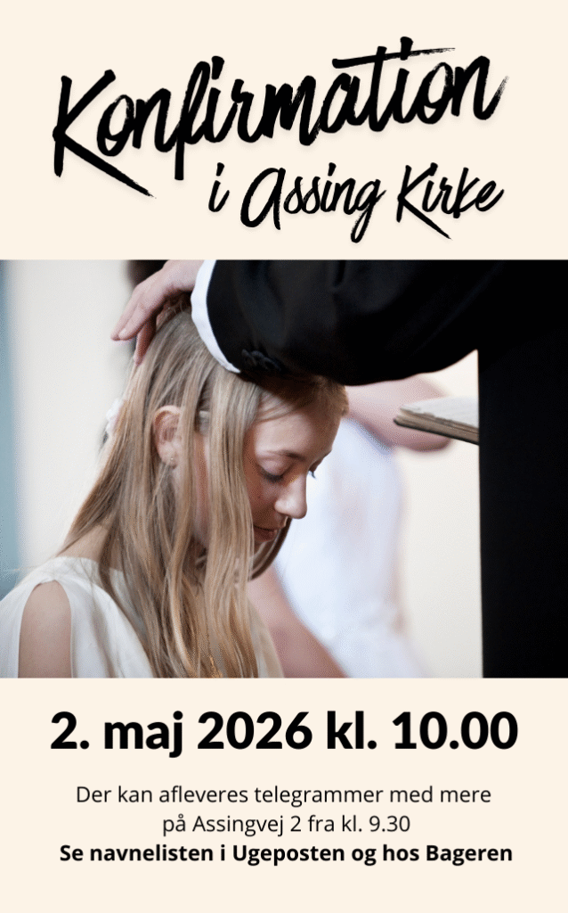 Lørdag 2/5 kl. 10.00 i Assing Kirke Der kan afleveres telegrammer mm. på Assingvej 2 fra kl. 9.30 Se navnelisten i Ugeposten og hos Bageren