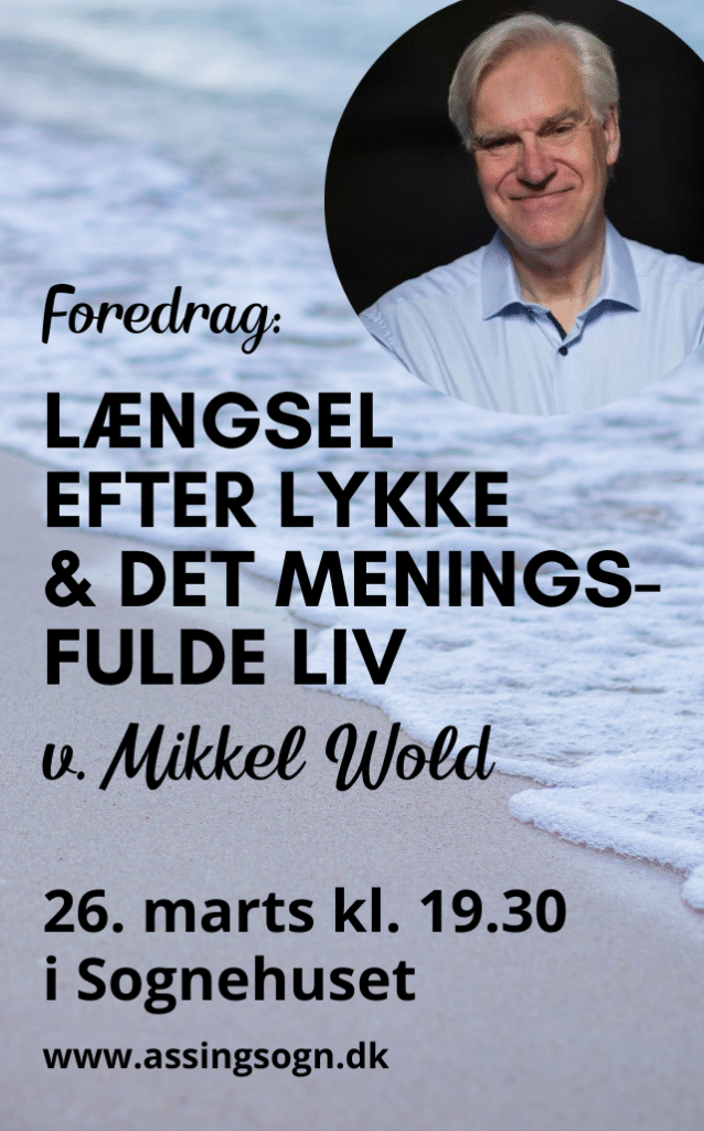 Mikkel Wold: Længslen efter lykke og det meningsfulde liv Foredrag for alle. Der er ingen tilmelding og der betales ved indgangen til Sognehuset.